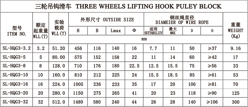 1、吊钩特点:优质合金钢模锻而成,3倍安全系数。 2、滑轮:铸铁滑轮、铸钢滑轮、热轧滑轮。 3、滑轮套芯:复合耐磨铜套、纯铜套、滚珠轴承、滚针轴承。 4、其他吨位可以定做。